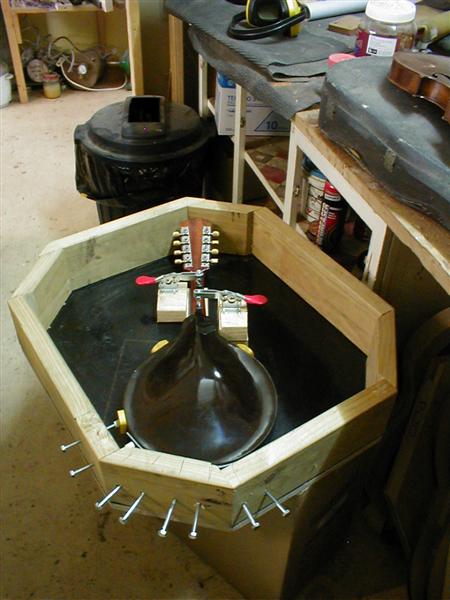 This is the jig that will hold this mandolin for about 6 months or so while it gets pressed slowly back into shape.