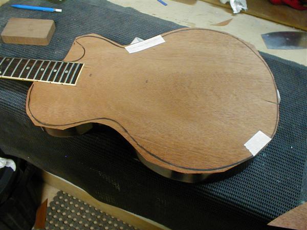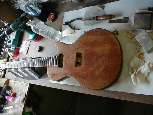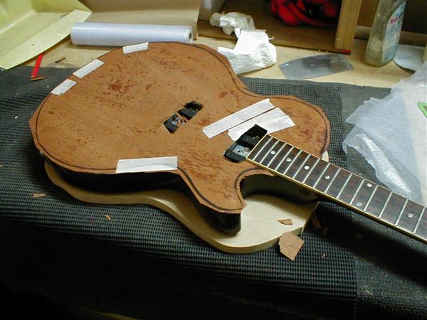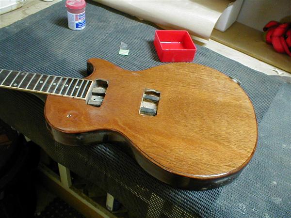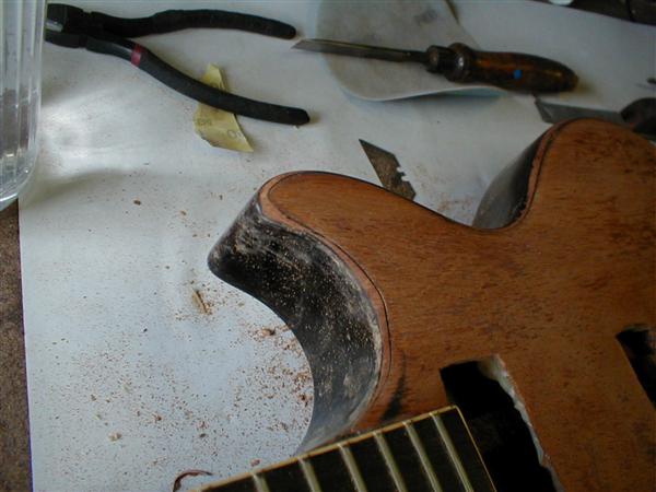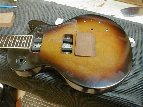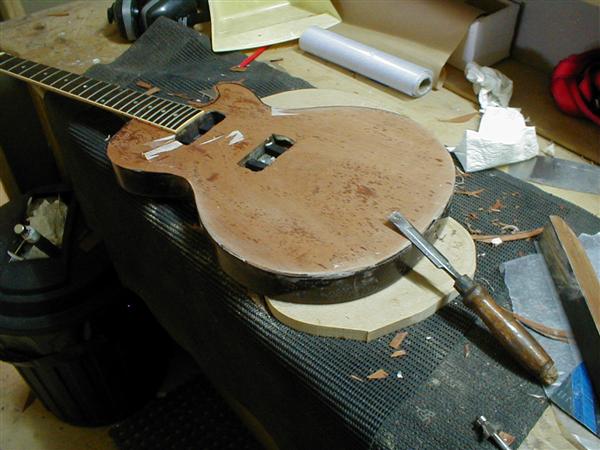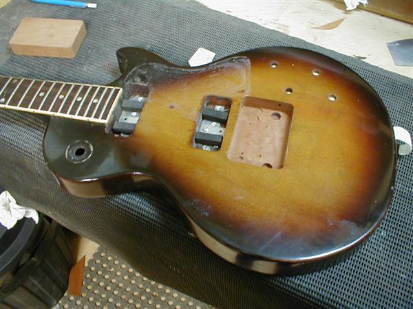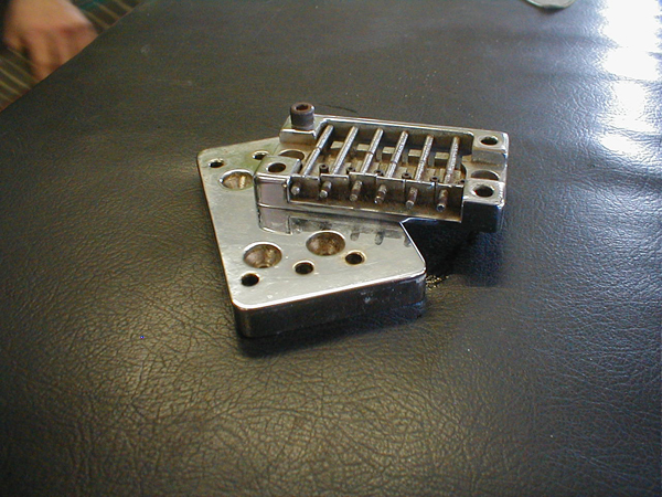 The original setup had a huge hunk of metal embedded in the body to which the bridge was screwed. Pretty good for sustain but added nearly an extra kilo!