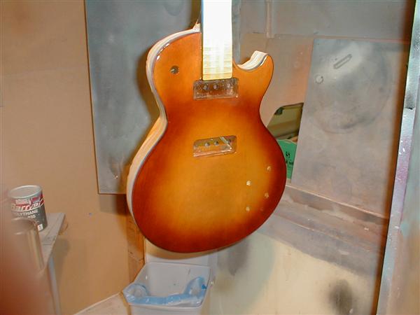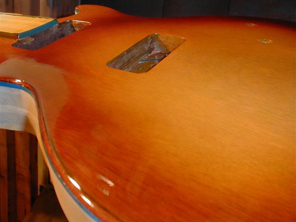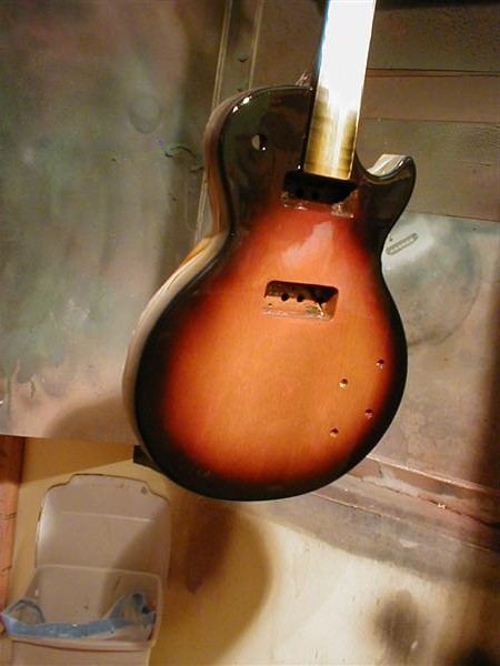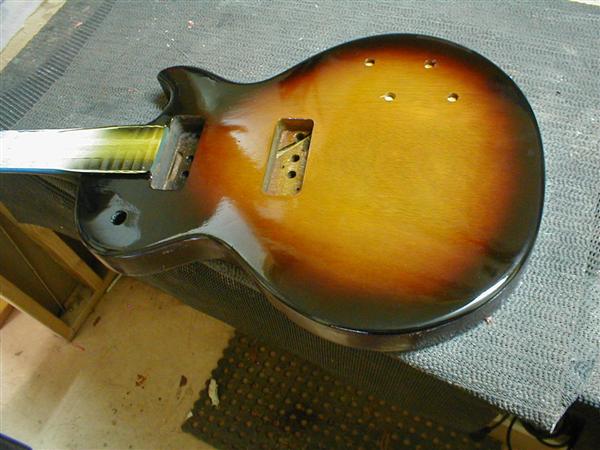 Sunburst finished and ready for re-assembly. Go back to the top to compare the match to the original 'burst, this is pretty much how it would have looked when it rolled out of the factory. We thought about exposing it to UV and and adding wear, but then we figured, that's up to the player!